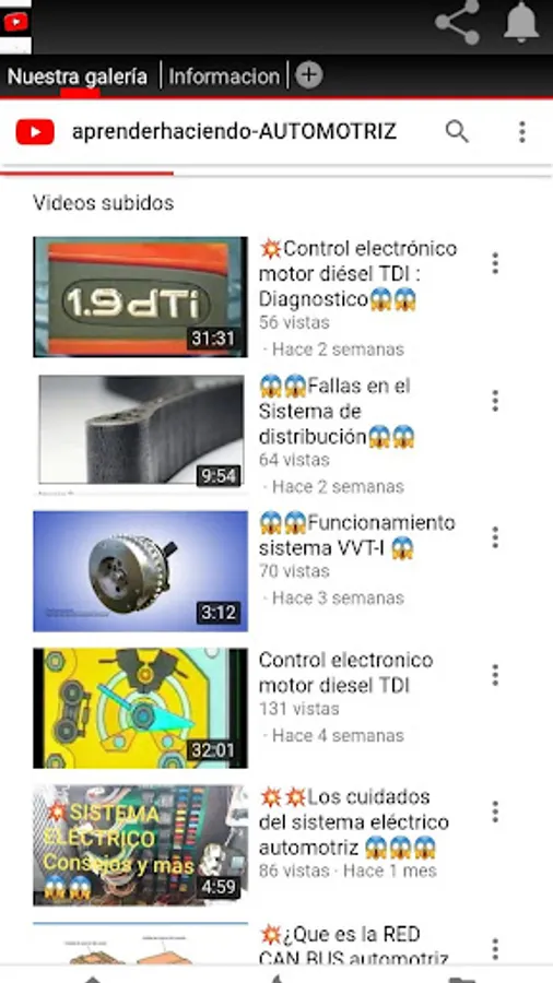 A platform where you will find videos related to automotive mechanics and electricity, problems and troubleshooting of different motor systems in which it will help you improve your knowledge and you can apply them.