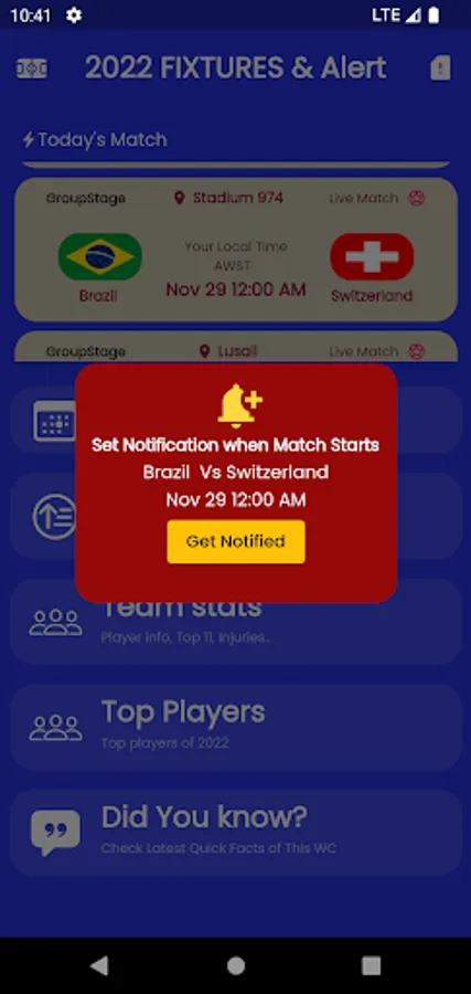 International Football and Friendly matches thoroughgoing, this app to help to get notification and easy fixture and match time to own device without any calculation and confusion.