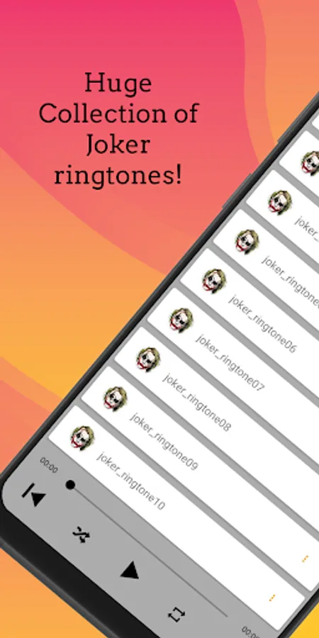We chose high-quality Joker ringtones in this app, particularly all of them are free. You can play them and set them as your default ringtone, notification, or alarm with just a single click.