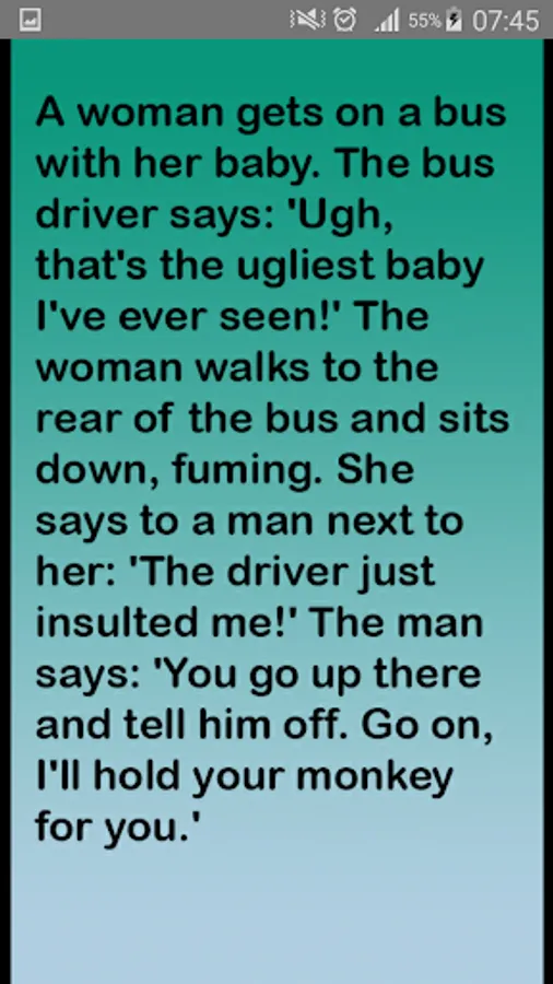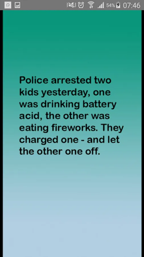 Une fois par jour, 3 jours ou une semaine (vous pouvez choisir la période, et également désactiver cette), vous serez informé que vous avez de nouvelles blagues et gags récupérés depuis le nuage. Aussi, chaque fois que vous ouvrez l'application, vous chercherez de nouvelles blagues dans le cyberespace, ouais!