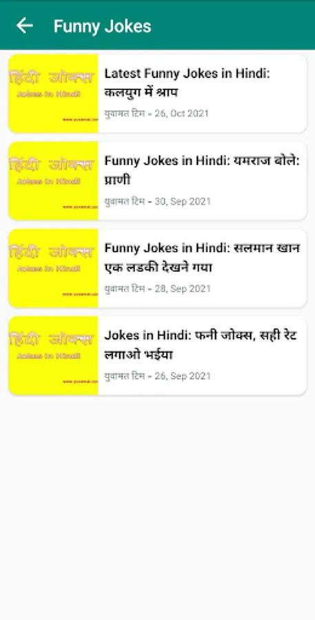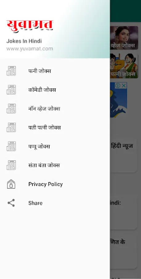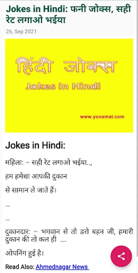 हिंदी जोक्स युवामत:- इस एप्प में आपको कई सारे हिंदी जोक्स और हिंदी चुटकुले जैसे कॉमेडी जोक्स, पती पत्नी जोक्स, नॉनव्हेज जोक्स, पप्पू जोक्स, संता बंता जोक्स, फनी जोक्स एक ही जगह पर दिए गए है. इस एप्प को आप ऑनलाइन के इस्तेमाल कर सकते है. आपको हर दिन नये जोक्स अपडेट कर देंगे आपको सिर्फ हसते रहना है |