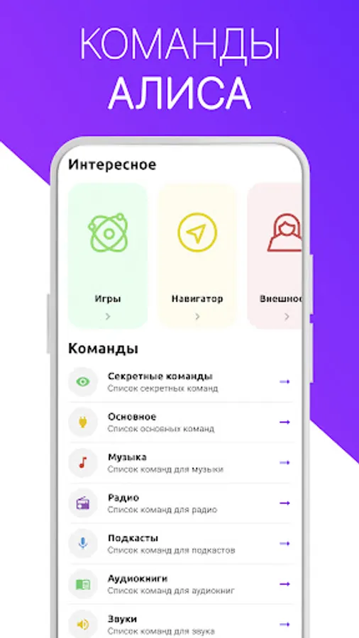 • This application is a guide for Yandex Alice. All voice commands and responses to them are carried out in Yandex.