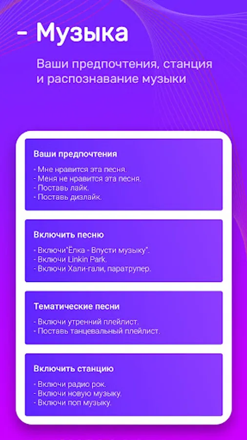 • This application is a guide for Yandex Alice. All voice commands and responses to them are carried out in Yandex.