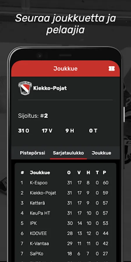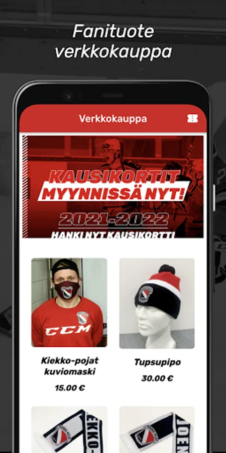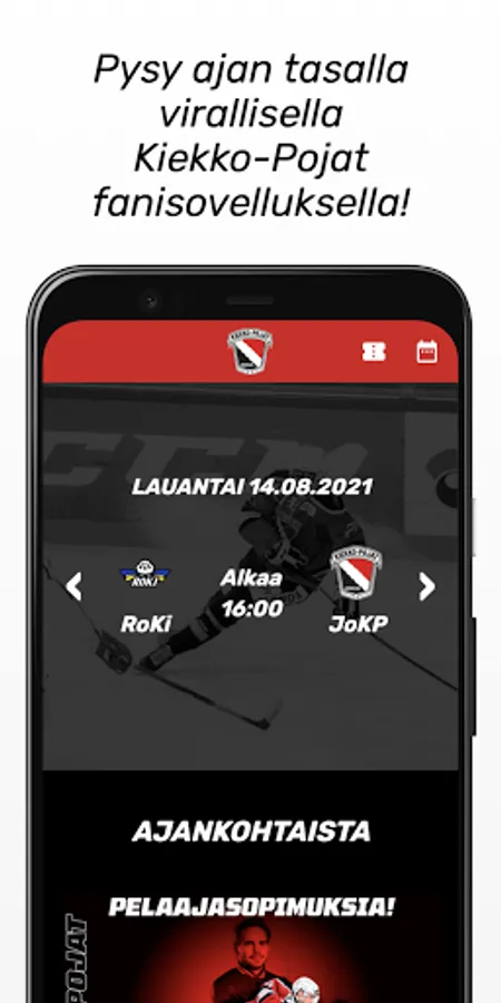Joensuu's Kiekko-Boys' official fan application, which allows you to see, among other things, the following matches, game results and league situation. In addition, you can buy fan products from the app, as well as participate in game-specific polls.