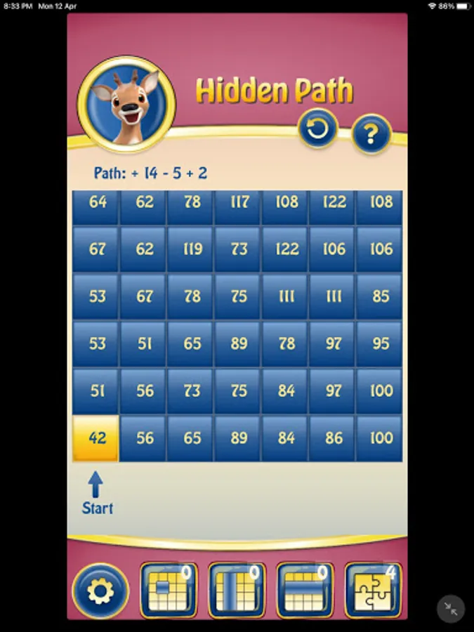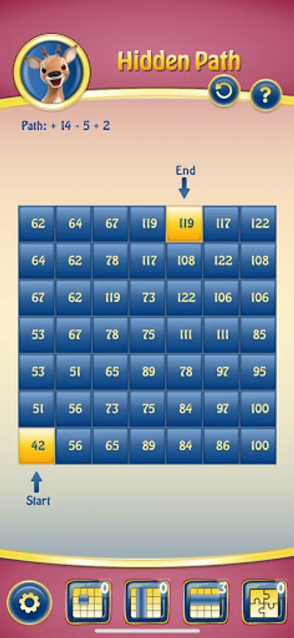 By following the given mathematical path, try to go from bottom left corner to the given point at the top row.