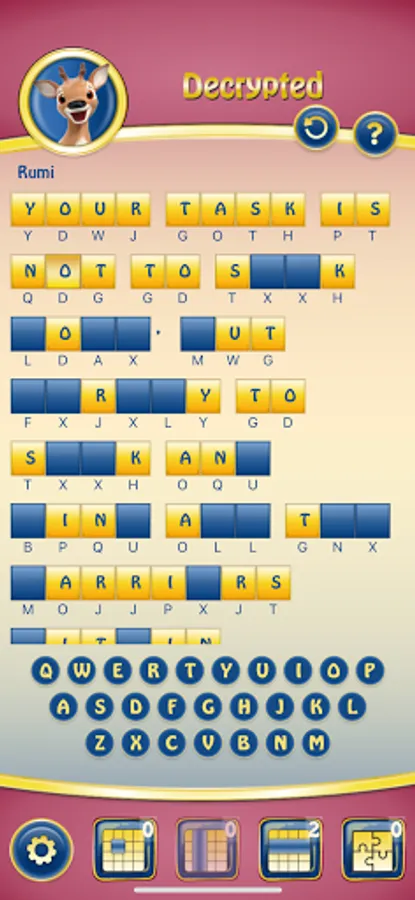 A type of puzzle that by replacing the given letters with different ones will give you a quote or a proverb