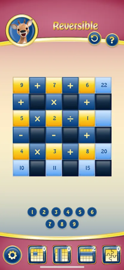 A number game where you have to reach the given sums by using the four mathematical operations and the numbers 1 to 9 only once