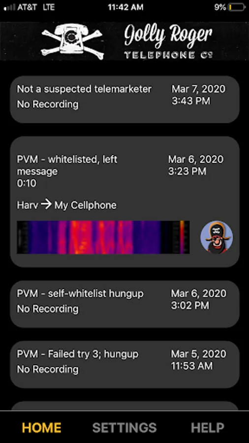 For users of the Jolly Roger Telephone Company's phone protection services, now you can have your Call Log as an app on your phone. So instead of having to log into our website whenever you want to check your voicemail, you can now just startup this app and review and listen to your calls.