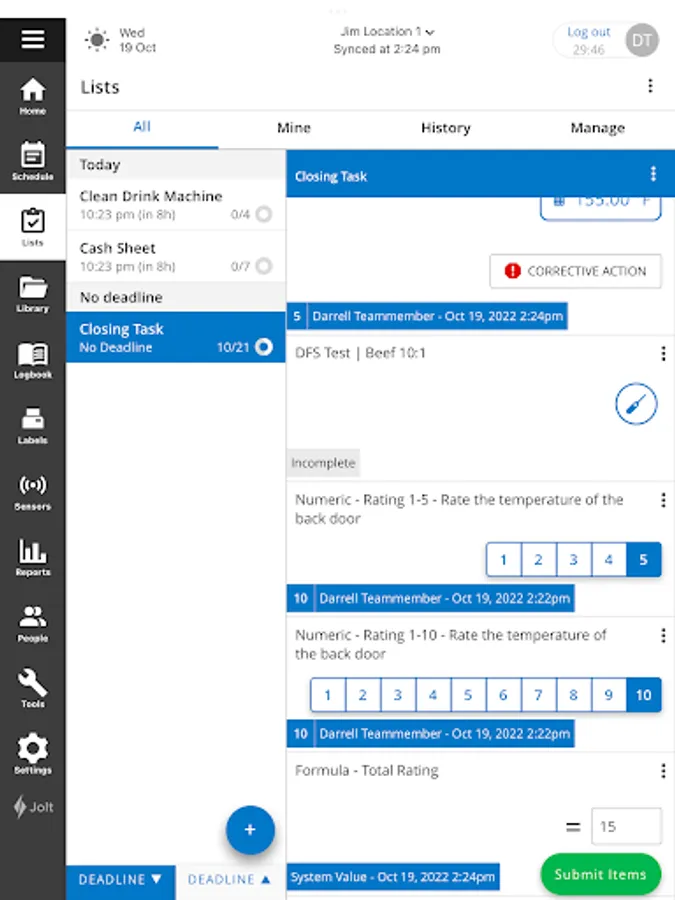 A digital checklist platform that delivers team accountability, digital food safety, and employee performance featuring integrated temperature probes & label printing, corrective actions, employee scheduling, and advanced reporting.