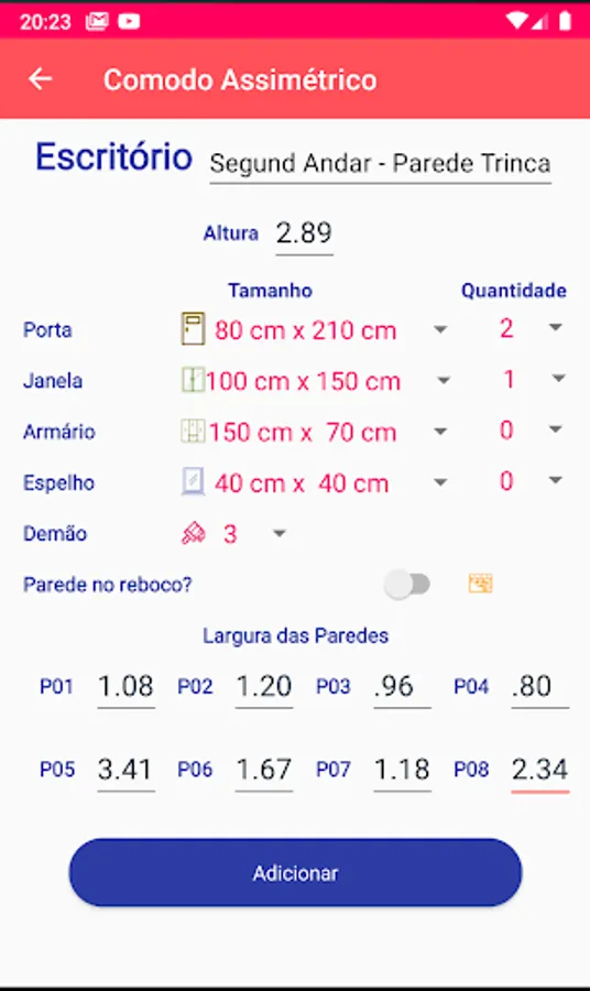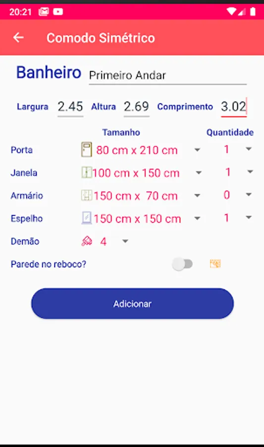 Calculates the amount of paint, spackle, sealer.