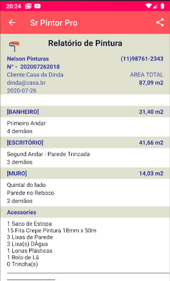 It creates a budget in a PDF, which can be shared, and has a detailed list of everything pertinent to the painting service.