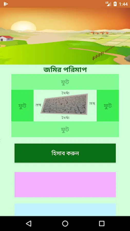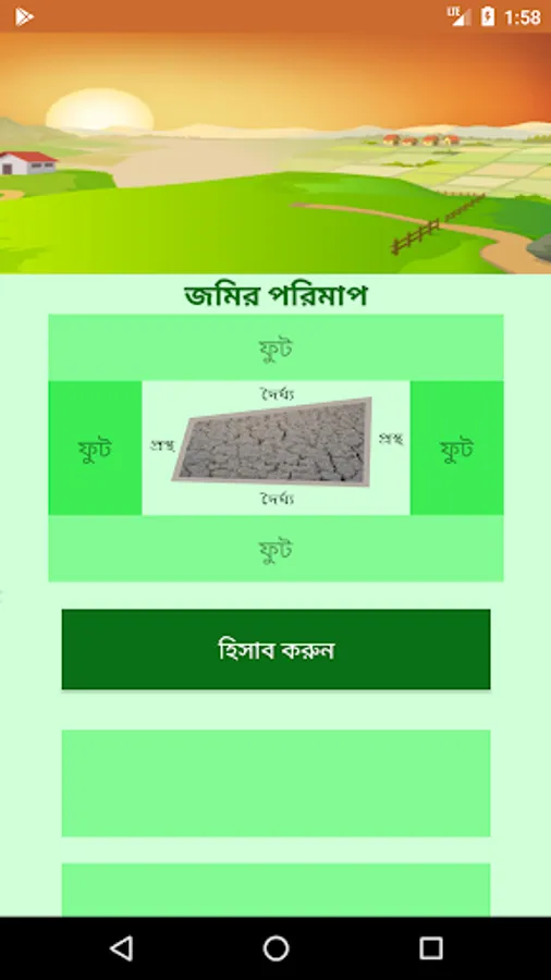 জমির হিসাব ( jomir hisab ) তথা জমির পরিমাপ ( jomir porimap ) বা জমির মাপ ( jomir map ) হল সবচেয়ে গুরুক্তপুর্ণ একটি বিষয়। জমির হিসাব ( jomir hisan ) তথা জমির পরিমাপ ( jomi porimap ) বা জমির মাপ ( jomir map ) এর বিষয়ে সকল প্রকার খুটিনাটি বিষয় আামাদের এই অ্যাপটিতে আলোচনা করা হয়েছে। জমির পরিমাপ যদি কাগজ পত্রে ঠিক ভাবে না থাকে হাতলে আমরা বিভিন্ন জটিল সমস্যায় পতিত হব। জমি ক্রয় বিক্রয় এর ক্ষেত্রে জমির দলিল ও জমির নকশা সর্ম্পকে আমাদের ভালো ধারণা থাকতে হবে। যদি আমরা জমির দলিল ও জমির নকশা সর্ম্পকে ভালো ধারণা না রাখি তাহলে আমরা খুব সহজেই প্রতারণার শিকার হব। এর সাথে আমাদের ভুমি আইন সর্ম্পকে ও ভালো ধারণা রাখতে হবে । ভুমি আইন যদি না জানি তাহলে আমরা ঠিক মত কোন সমস্যাস সমাধান করতে পারবো না।