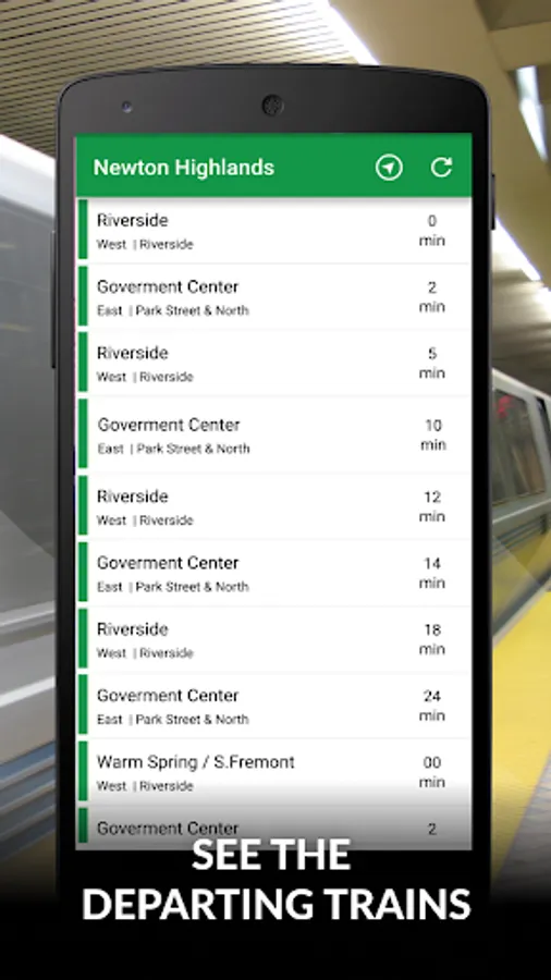 - Displays real-time estimated departures loaded directly from MBTA servers.