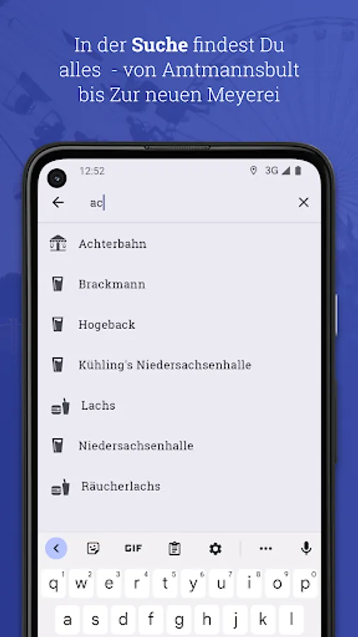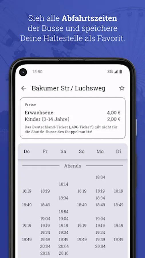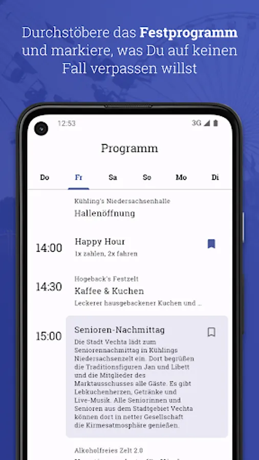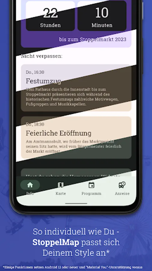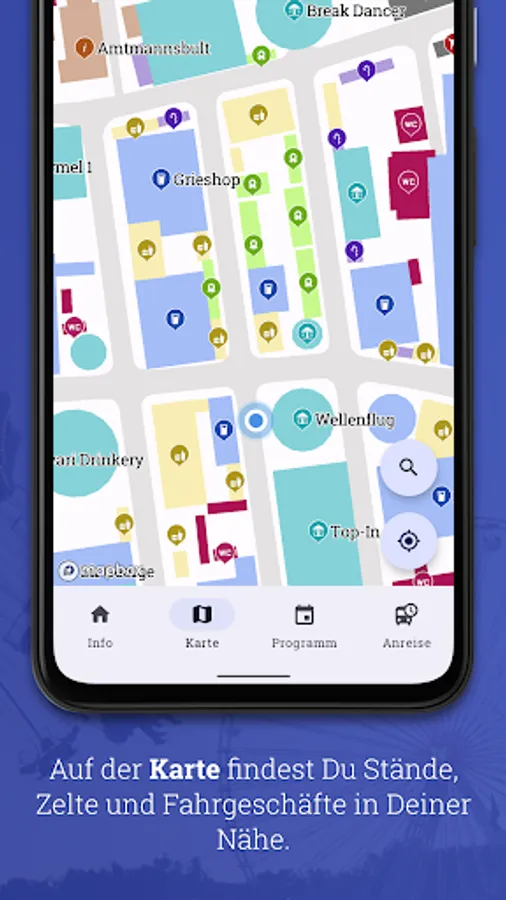 And best of all: Everything works completely offline! That means: even if you don't have mobile internet reception on the Stoppelmarkt premises, you can still use the map, the search function, the program overview and the bus timetables!