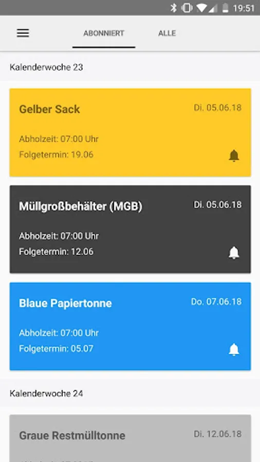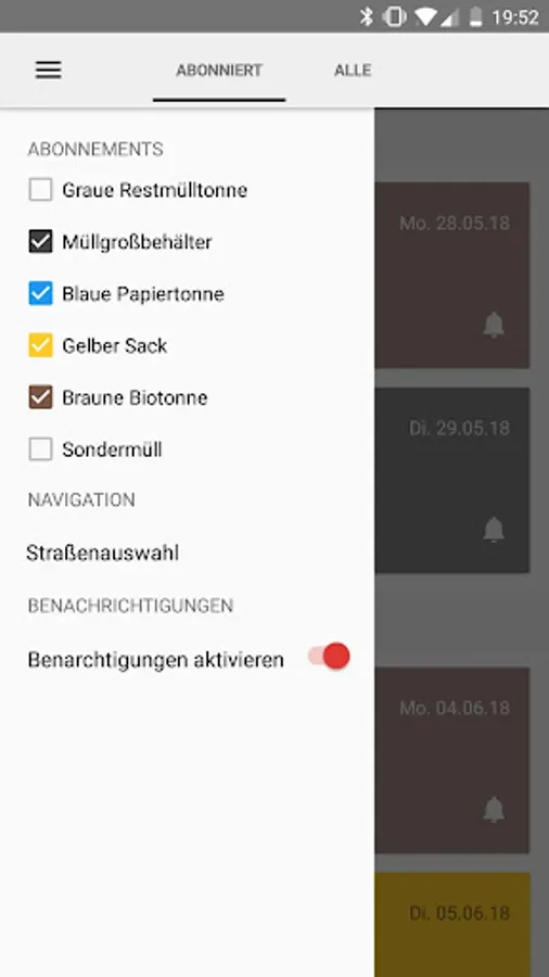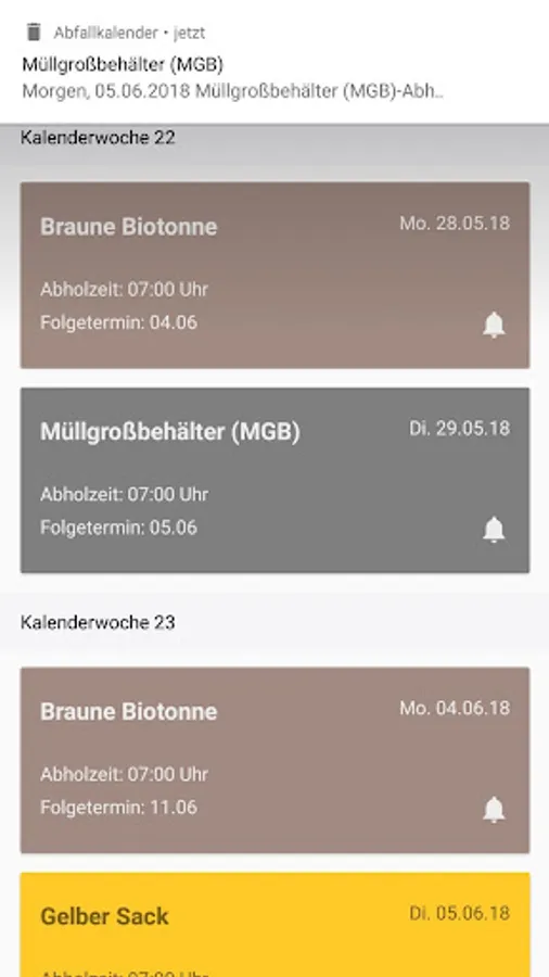 The garbage-app sends them reliably on the eve of every Termines a notification on their device. In this case no active Internet connection is required.