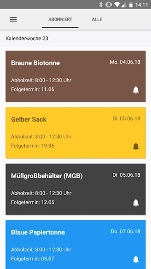 Our waste calendar offers a simple overview of all Abhohlungsterminen. The app comes without ads and works completely offline.