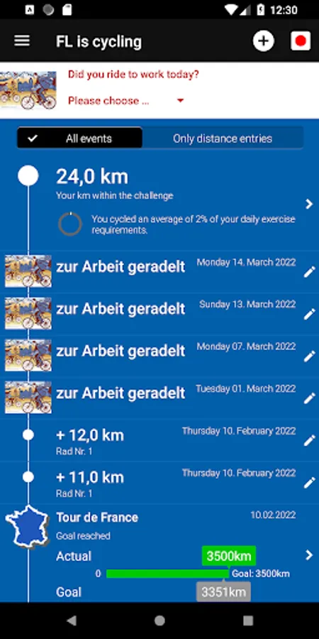Registering the cycled km of the Liechtenstein cycling actions. Offers your personal cycling statistics, possibility to track cycled km and m of height difference, to set personal goals, consult the weather forcast, participate at cycling actions.