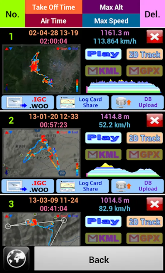 Seeing track thumbnail, you can easily find a specific flight record and