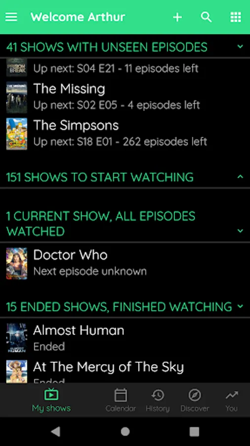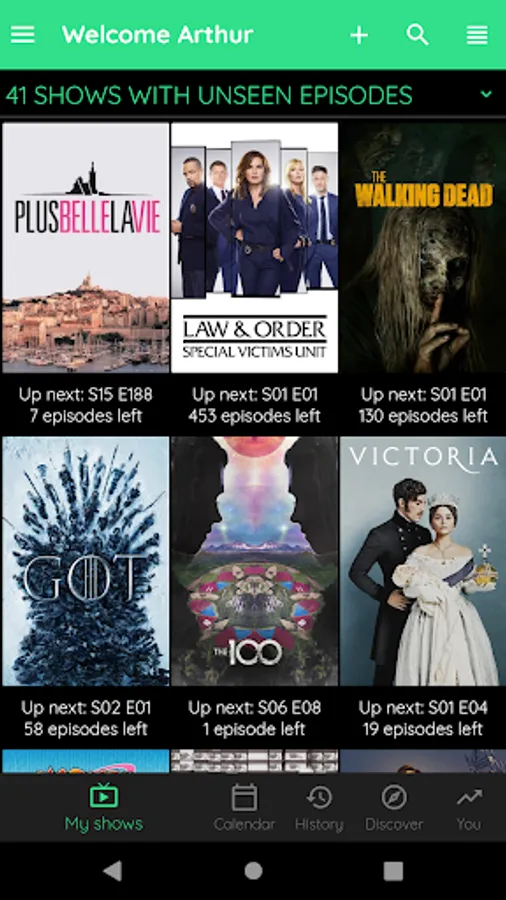 - Overview of all the upcoming episodes and those you didn't watch yet.
