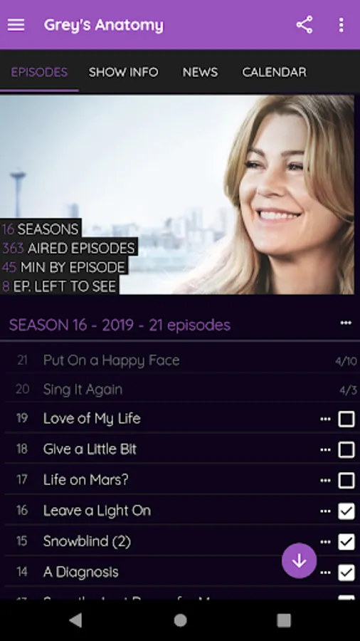 - Mark episodes you've seen to remember what you need to watch next,