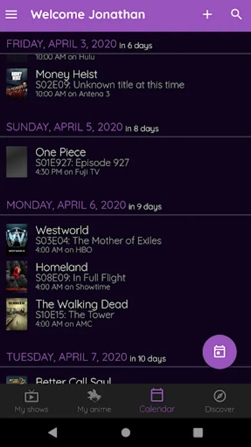 - Overview of all the upcoming episodes and those you didn't watch yet.