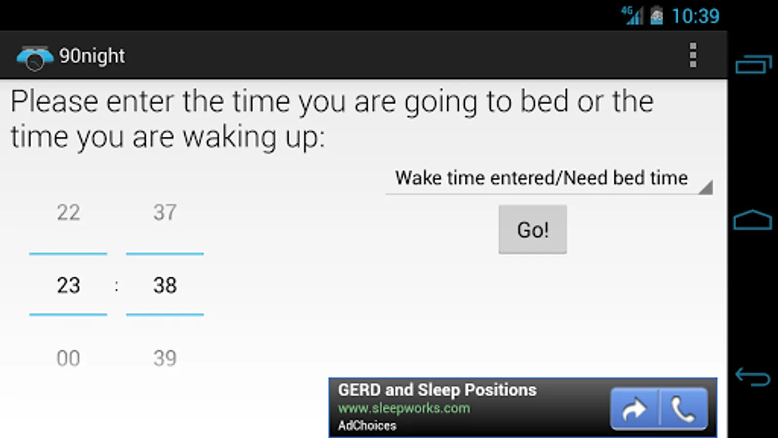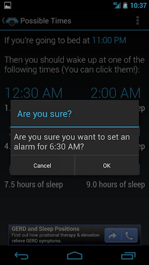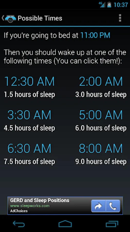 With 90night you can calculate the times you can wake up if you know when you are going to sleep or you can calculate the times you can go to sleep if you know when you are waking up. It also provides you buttons you can press that can set an alarm for you using your preferred alarm app.