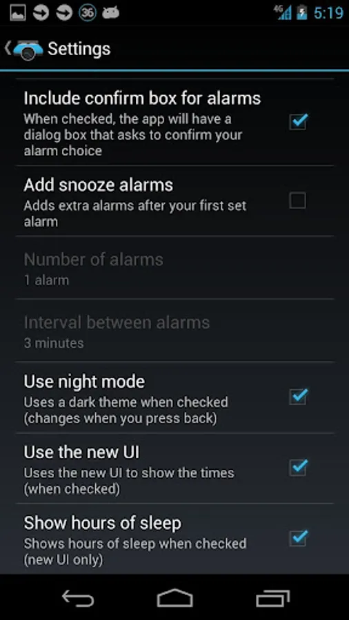 [✔]The option to automatically add extra snooze alarms after you set the original alarm (with the option to pick how many alarms you want and the interval between the alarms)