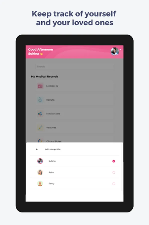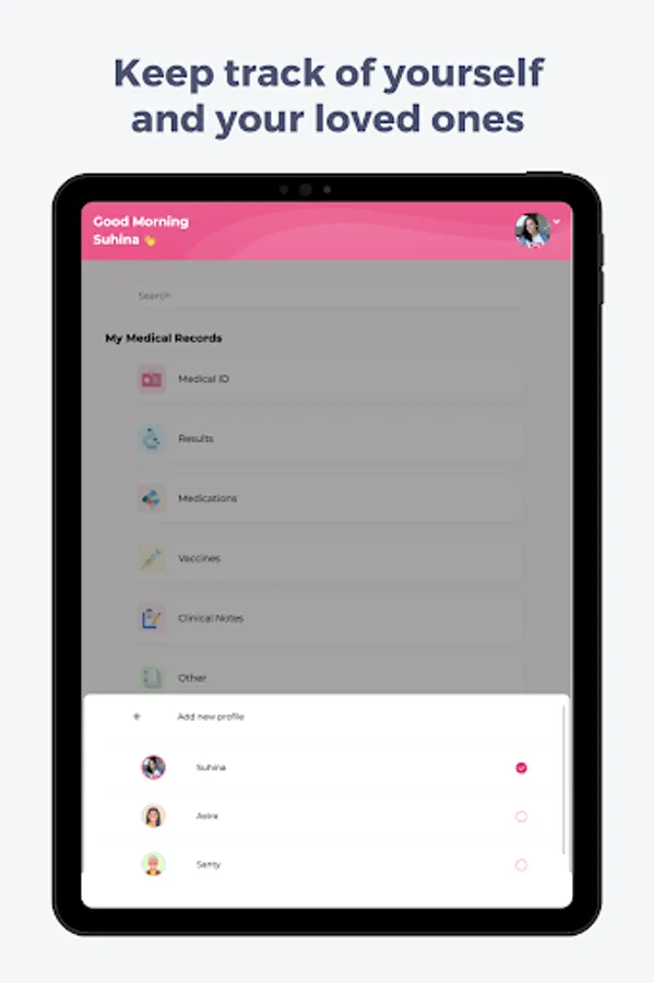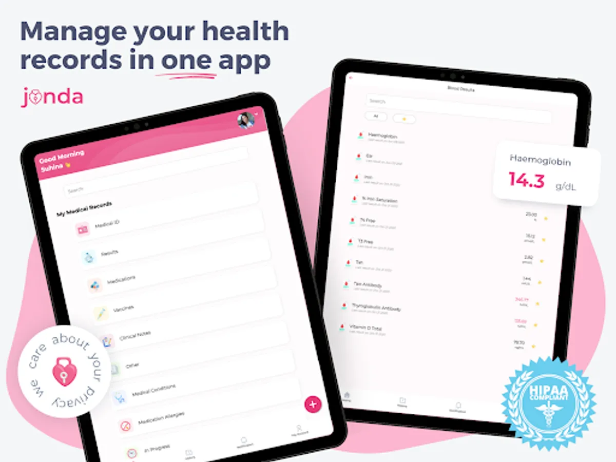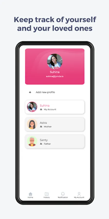Keep track of yourself and your loved ones with Jonda's multiple profiles and stay on top of your health.