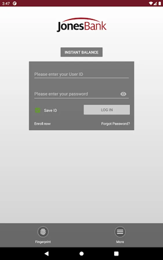 First time users can enroll from the app. For additional information, please contact us at support@jonesbank.com or 888.562.3602. Jones Bank does not charge a fee for Mobile Banking. Data and text message rates may apply.