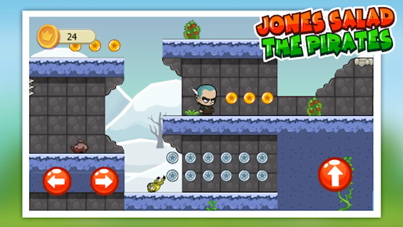 The pirates start the adventure in the jungle and run to other worlds to contain they're exploring unknown places, in the way, there are many different dangerous obstacles and enemies, so try to run, jump to avoid all obstacles, and collect coins.