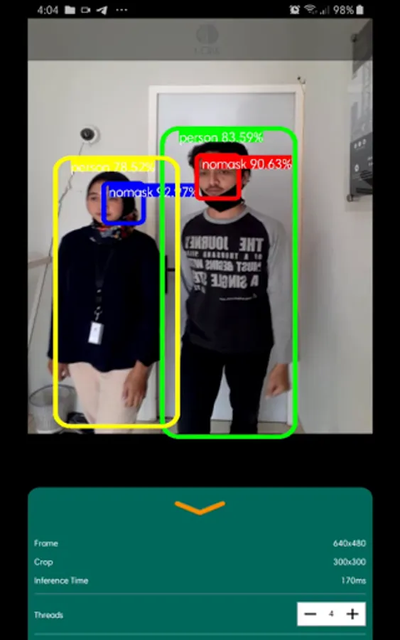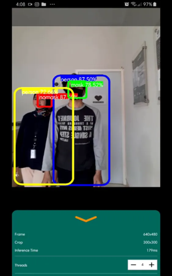 Aimask is intelligence application that can detect face with or without mask by using artificial intelligence technology. Aimask has a purpose to prevent any person come to certain area without using mask. We also provide some features such as alarm and screen shoot.
