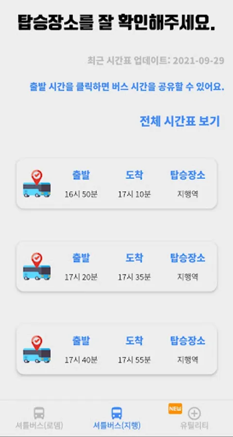 Please log in to each store you are using, enter the Shinhan University shuttle bus, and check if the update appears.