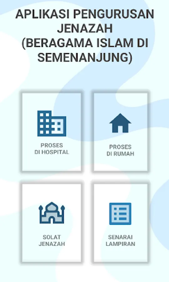 Aplikasi Pengurusan Jenazah ni dibangunkan bertujuan untuk memudahkan para pengguna untuk memahami dan melaksankan prosuder pengurusan jenazah dalam kalangan keluarga khasnya dan dalam kalangan masyarakat amnya. Aplikasi ini boleh dibuka menggunakan handphone. Ia mencakupi penerangan tentang prosuder pengurusan jenazah dan contoh-contoh lampiran yang diperlukan untuk proses pengurusan jenazah. Ia meliputi daripada Surat Pengesahan Kematian, Surat Permit Gali Kubur, Khairat Kematian dan lampiran-lampiran yang diperlukan. Sasaran pengguna aplikasi ni adalah dalam kalangan pelajar Kolej Komuniti dan Politeknik Negeri Johor. Namun ia akan disebarluaskan penggunaannya ke seluuh Malaysia. Aplikasi yang rengkas ini mampu memberi kefahaman yang jelas kepada pengguna untuk melaksanakan proses pengurusan jenazah dari mula hingga selesai pengkebumian.