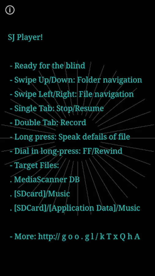 Accessibility-ready sound recorder and player working with gestures. There is no need of settings menu or Talk-back feature to use it. There are two key concepts, "Files and one layer of Folders" .