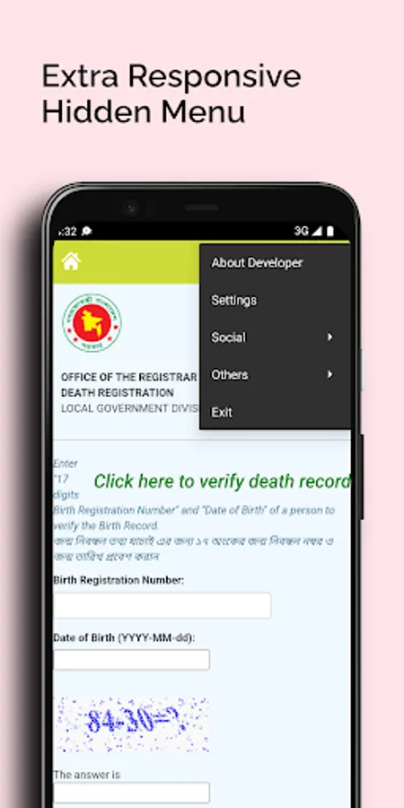 Disclaimer: We are not affiliated with Govt and Local Government divisions in any manner. Directly we don't provide all birth and death certificates, We just embed all Govt websites (bdris.gov.bd) to easily access. The content of this application is available free on public domains. For any kind of content removal request contact us on our developer email, we will look into your concern and take action from our side as soon as possible.