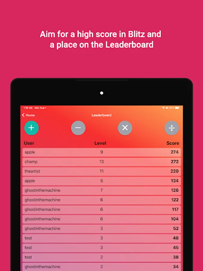 Blitz! Leaderboards: Compete for a high score in Blitz! against your friends, family, classmates, or the rest of the world
