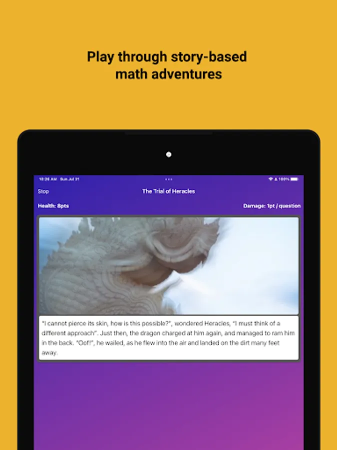Stories: Play an endless collection of mini adventure games that combine great picture book stories with multiple choice math questions. In some games, you need to race against the clock, and in others, you have health points and try to beat the game without taking too much damage from wrong answers. Have a good idea for a story-based game? The Stories builder lets you easily create and share these Stories for all to play.