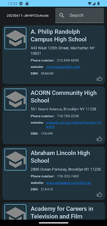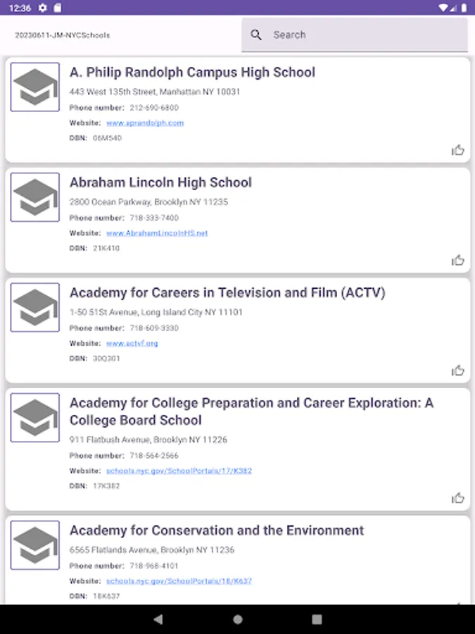 -Display a list of NYC High Schools. https://data.cityofnewyork.us/Education/DOE-High-School-Directory-2017/s3k6-pzi2