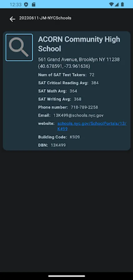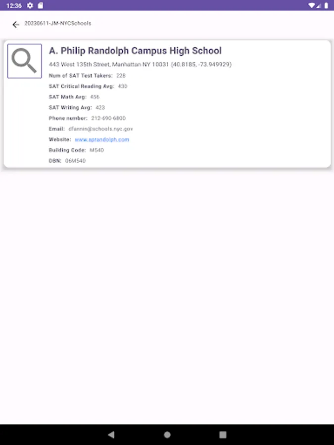 -Selecting a school show additional information about the school including SAT scores SAT data here: https://data.cityofnewyork.us/Education/SAT-Results/f9bf-2cp4