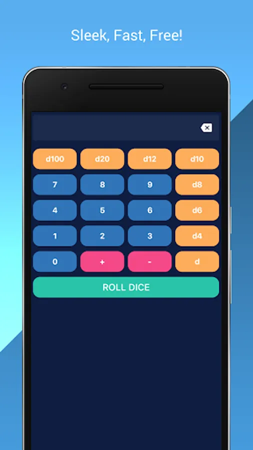 • Predefined dice buttons (d4, d6, d8, d10, d12, d20, d100) for quick and easy access to common dice used in most tabletop games.