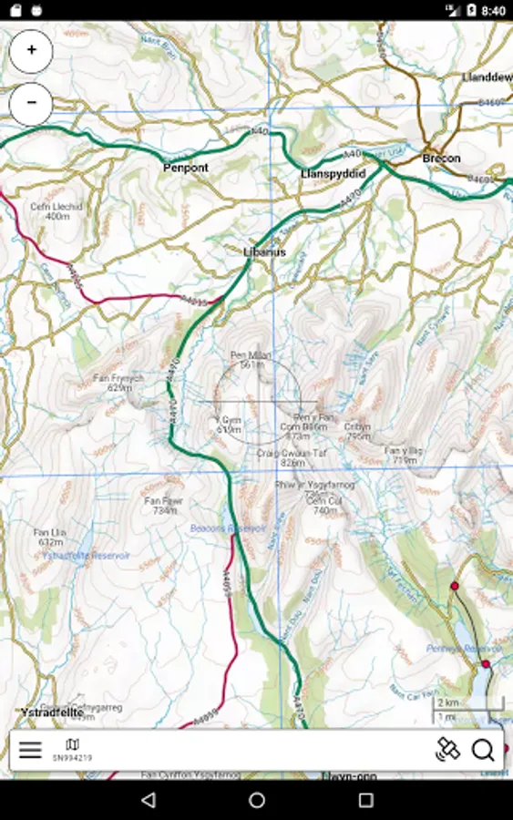An offline map of the Brecon Beacons National Park in Wales, ideal for hiking, running, mountain biking / cycling. Being offline means unlike other map apps, you don't need a signal to access detailed maps of the area.