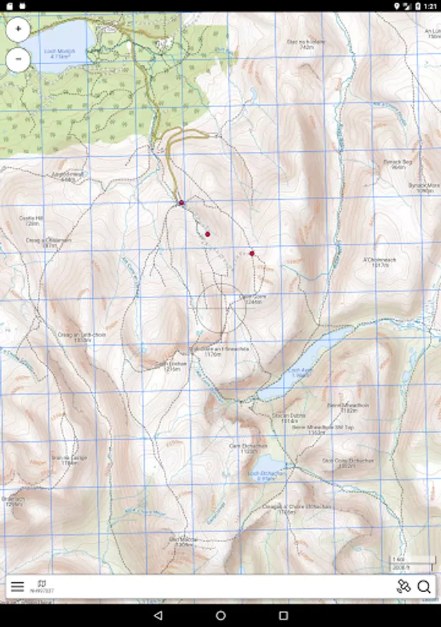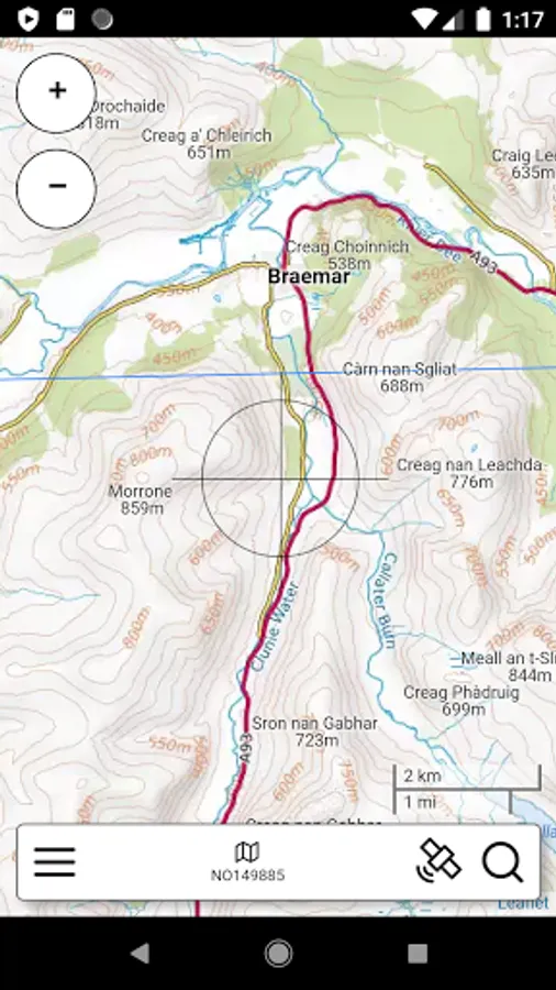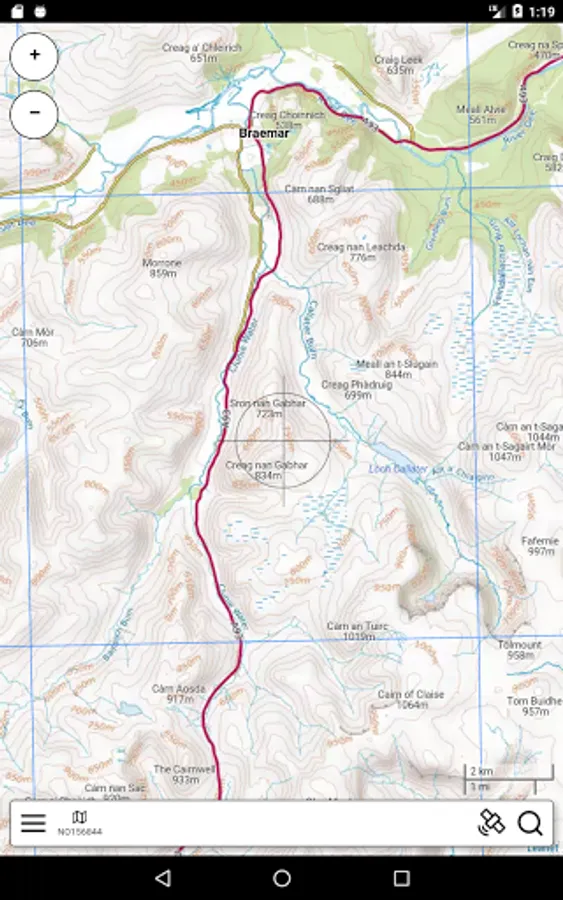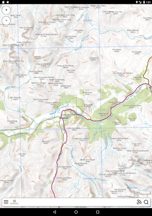 An offline map of The Cairngorms National Park in Scotland, ideal for hiking, running, mountain biking / cycling. Being offline means unlike other map apps, you don't need a signal to access detailed maps of the area.