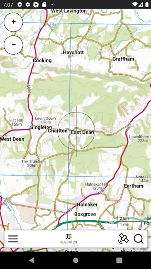 An offline map of the South Downs National Park in England, ideal for hiking, running, mountain biking / cycling. Being offline means unlike other map apps, you don't need a signal to access detailed maps of the area.