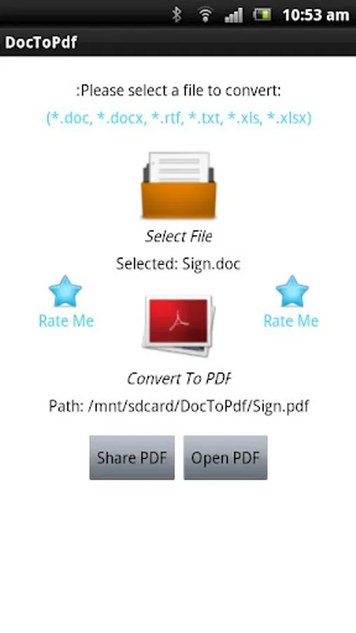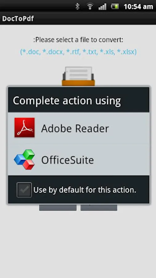 Simply, pick any document and click "Convert To PDF", its done. Once pdf is engendered, you can share the pdf via bluetooth or send it via e-mail. You can also view the converted pdf document using any of your existing PDF viewer android app (say, Adobe Reader).