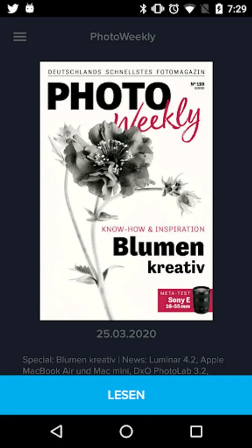 Photo Weekly provides everything photographers interested every week: Inspiring Ideas for photography - and what you can not do with his pictures. Trends and new products. Serious as well as curiosities. All Together compact and optimized so that you can read it easily and experience. And do not miss anything that has to do with the most beautiful hobby in the world. Above all, we want to encourage you to take pictures. With practical tips and interesting background stories. And in each issue with photo ideas that you can immediately implement. Happy reading and taking pictures!
