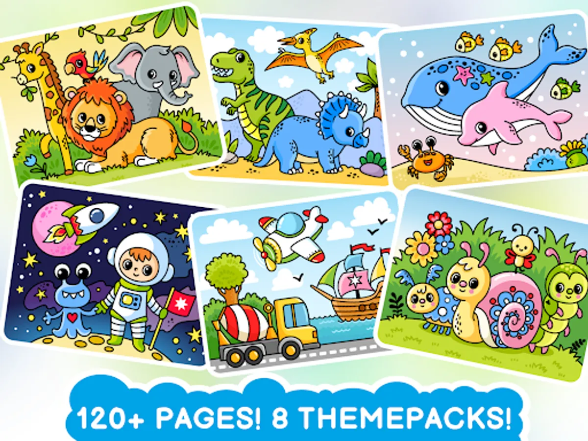 Many kids games not only attract the attention of the child, but also have a great impact on the education and development of the toddler. Especially if this is a drawing application or coloring (drawing) for kids. By creating drawings and coloring pictures, kindergarten kids not only develop fine motor skills, which affects the development of thinking, but also learn a lot about our world by studying the shapes and colors of different objects through drawing. This coloring book for kids contains a large number of attractive drawings for kids.