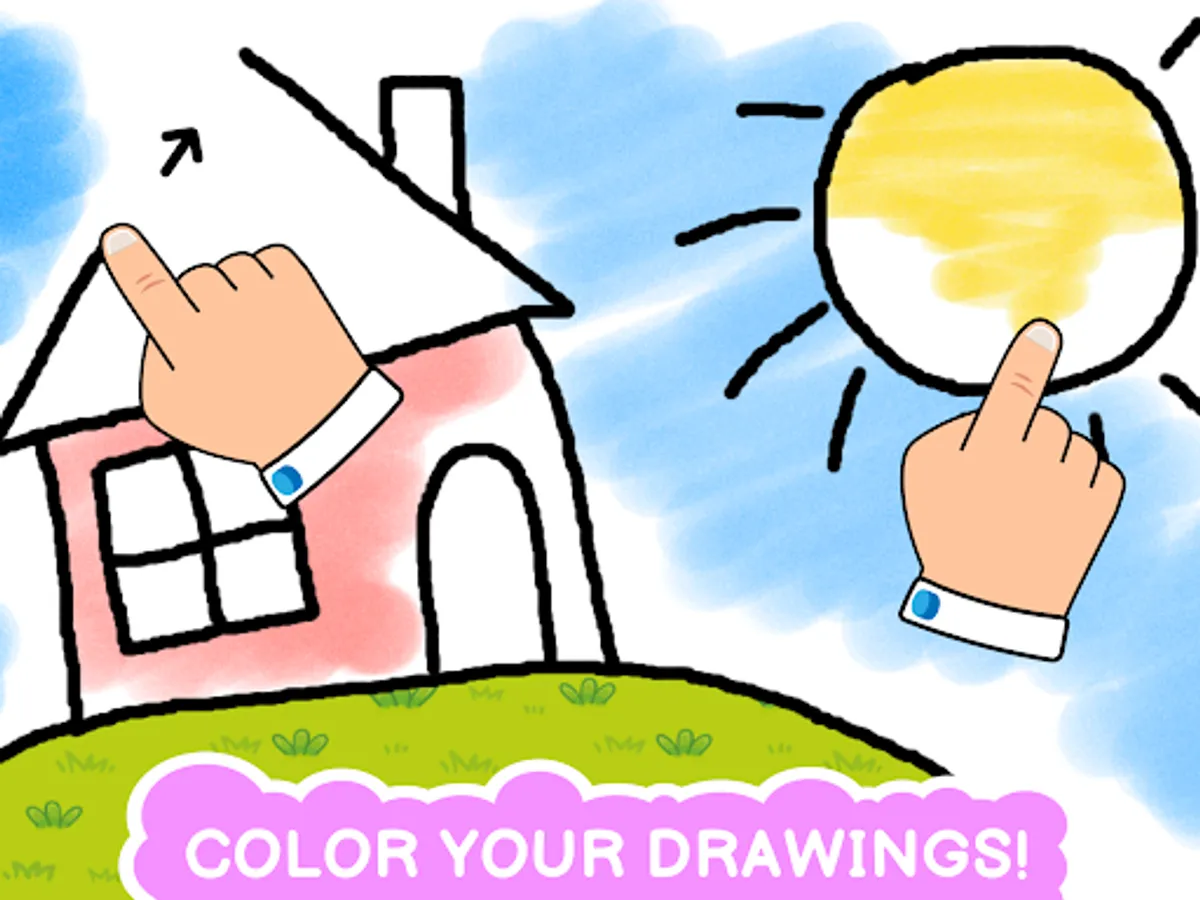 Our coloring app for toddlers has an excellent drawing mode in which the toddler draws any drawings with a black marker, and then colors them just like other coloring pages. The path fill and other coloring tools will work.