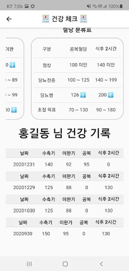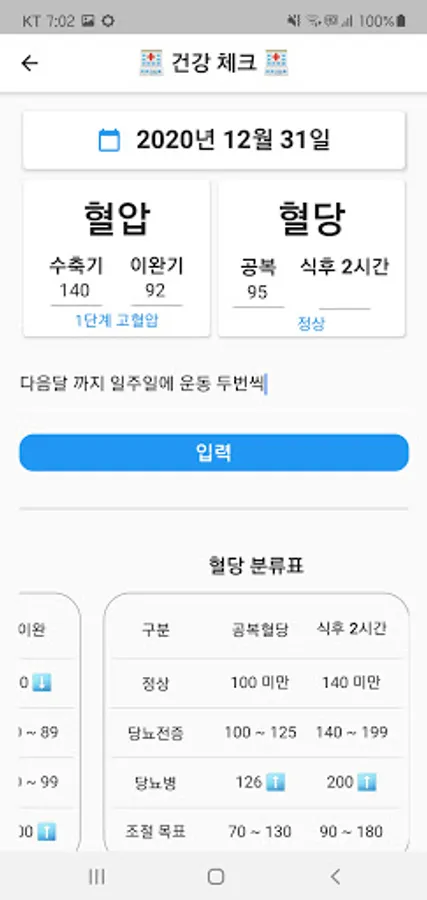 2. After setting the blood pressure and blood sugar, if you record it in the app, the risk level is displayed in real time.