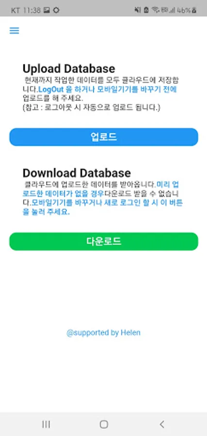 8. When you change the mobile you are using, you can move the DB with the backup and download function.