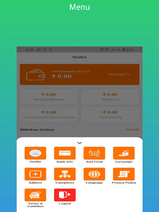 This will be the Restaurant end where vendors can receive and update orders. All features includes restaurant on/off, Menu updating, Financial tracking and everything related to restaurants can be modified here using this app.